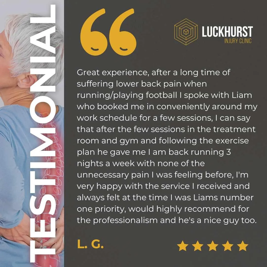 As the #1 Back Pain Specialist in Suffolk, Liam brings unparalleled expertise and a track record of success to the table. Trust in Liam's knowledge, experience, and genuine commitment to your well-being, and take the first step towards a life free from back pain.